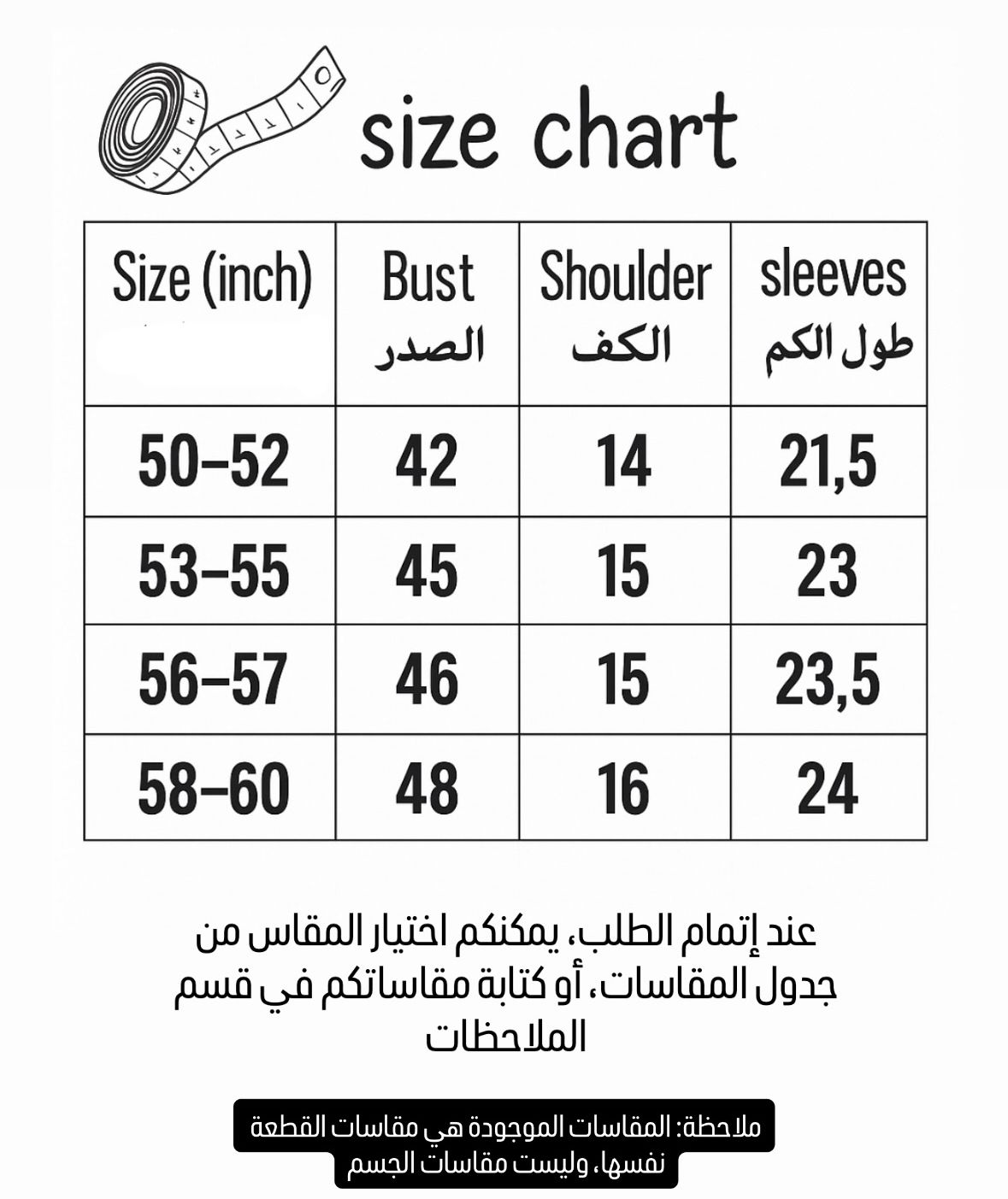 المقاس ( يرجى التاكد من جدول المقاسات) *