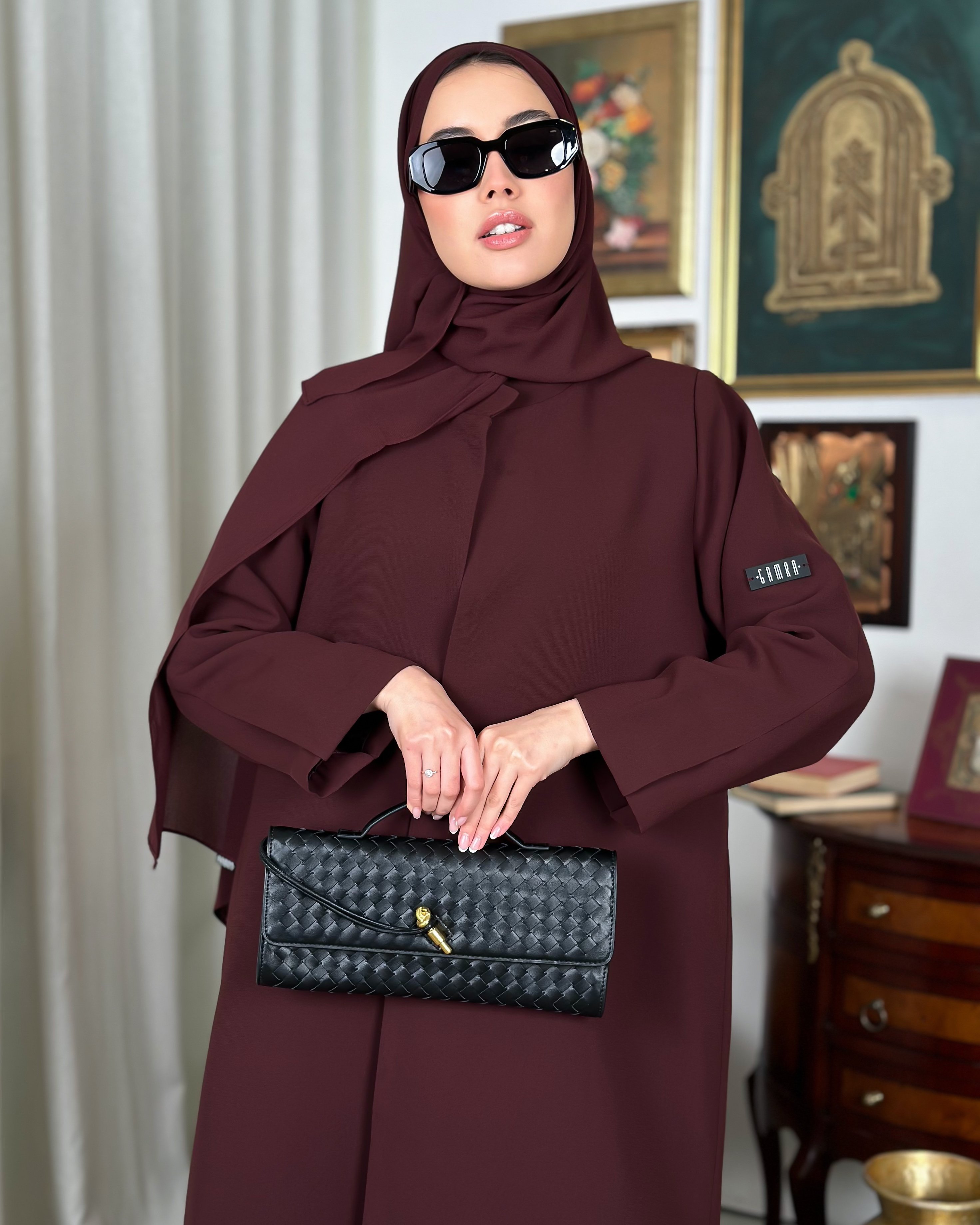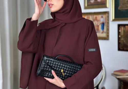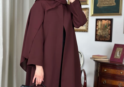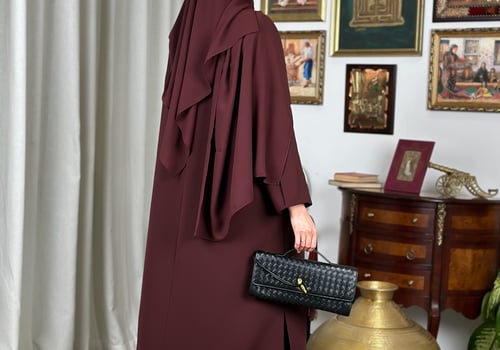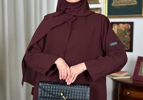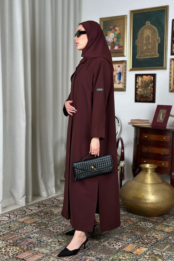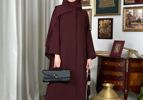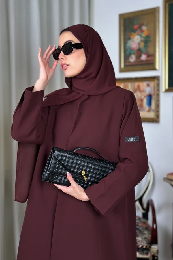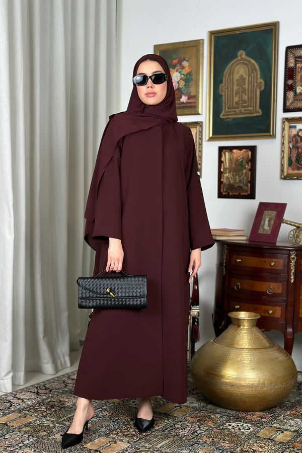 Basic padded abaya, designed with shoulder pads, made from Kuba fabric, and available in multiple colors.