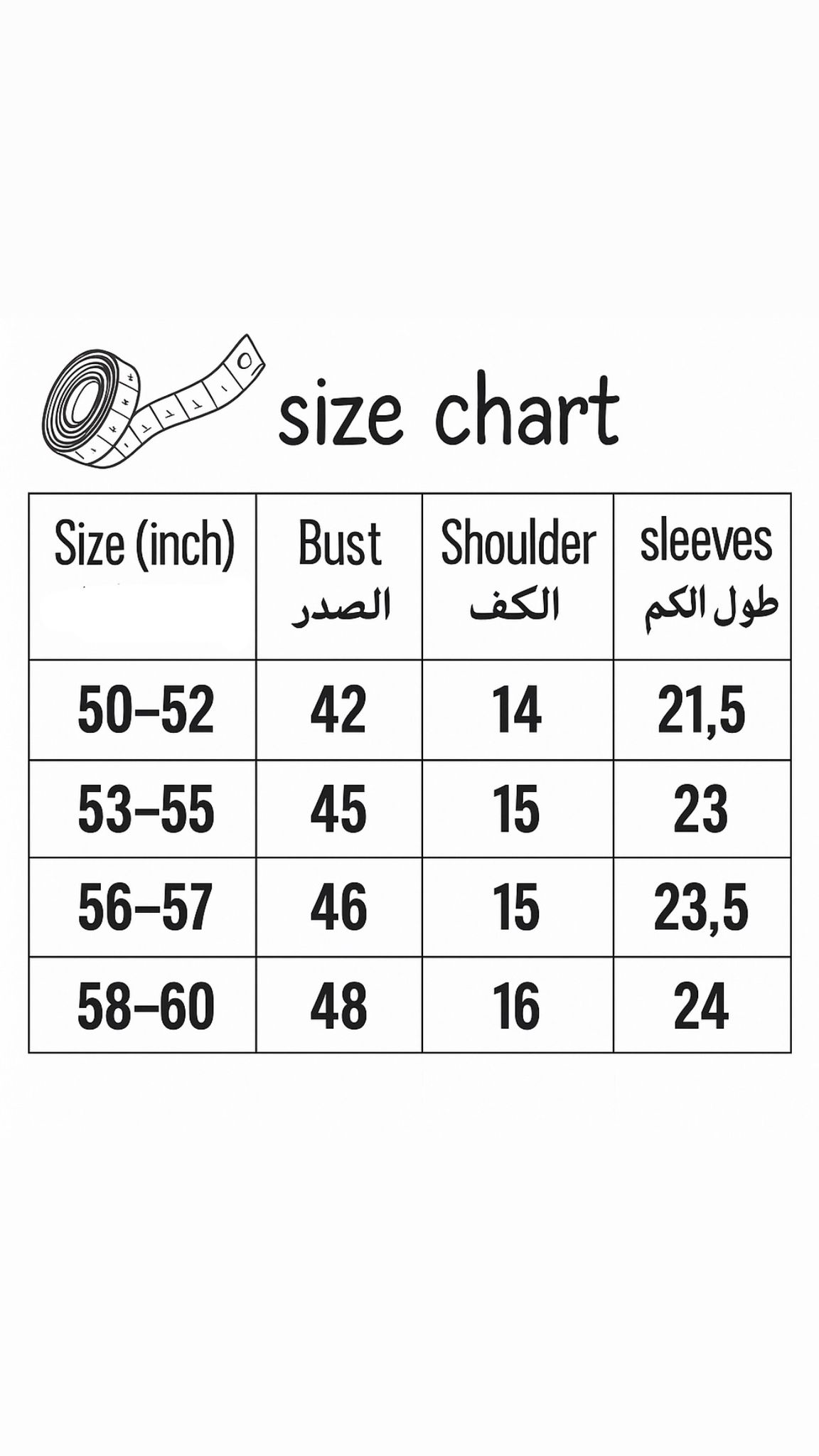 المقاس ( يرجى التاكد من جدول المقاسات) *
