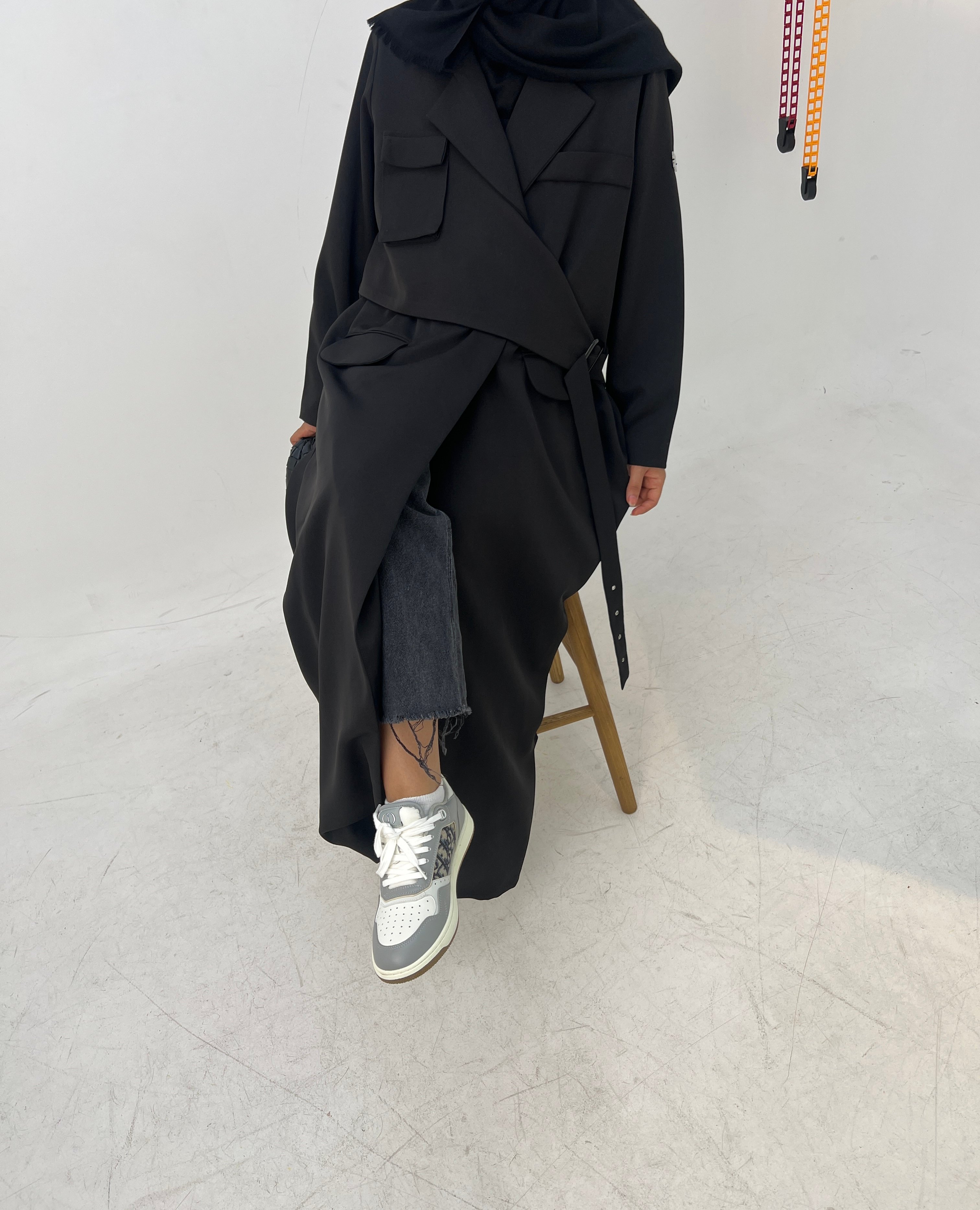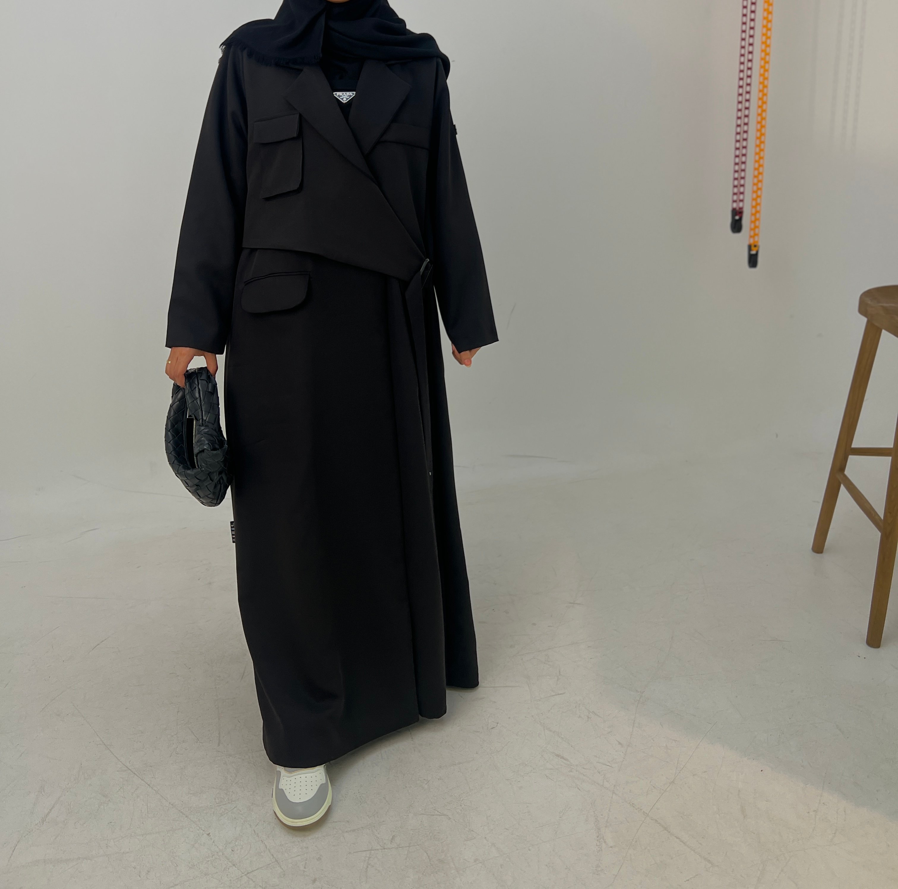 Details: Blazer abaya Cuba fabric , padded and with added shoulder pads, plain shawl