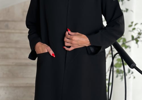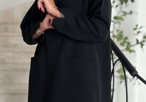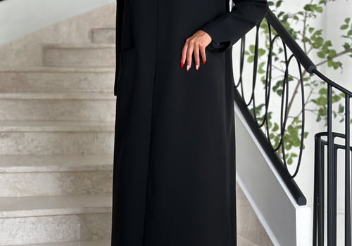 Details: Blazer abaya Cuba fabric , padded and with added shoulder pads, plain shawl Washing the abaya: Please be mindful when washing the abaya and we recommend dry cleaning at specialized laundries