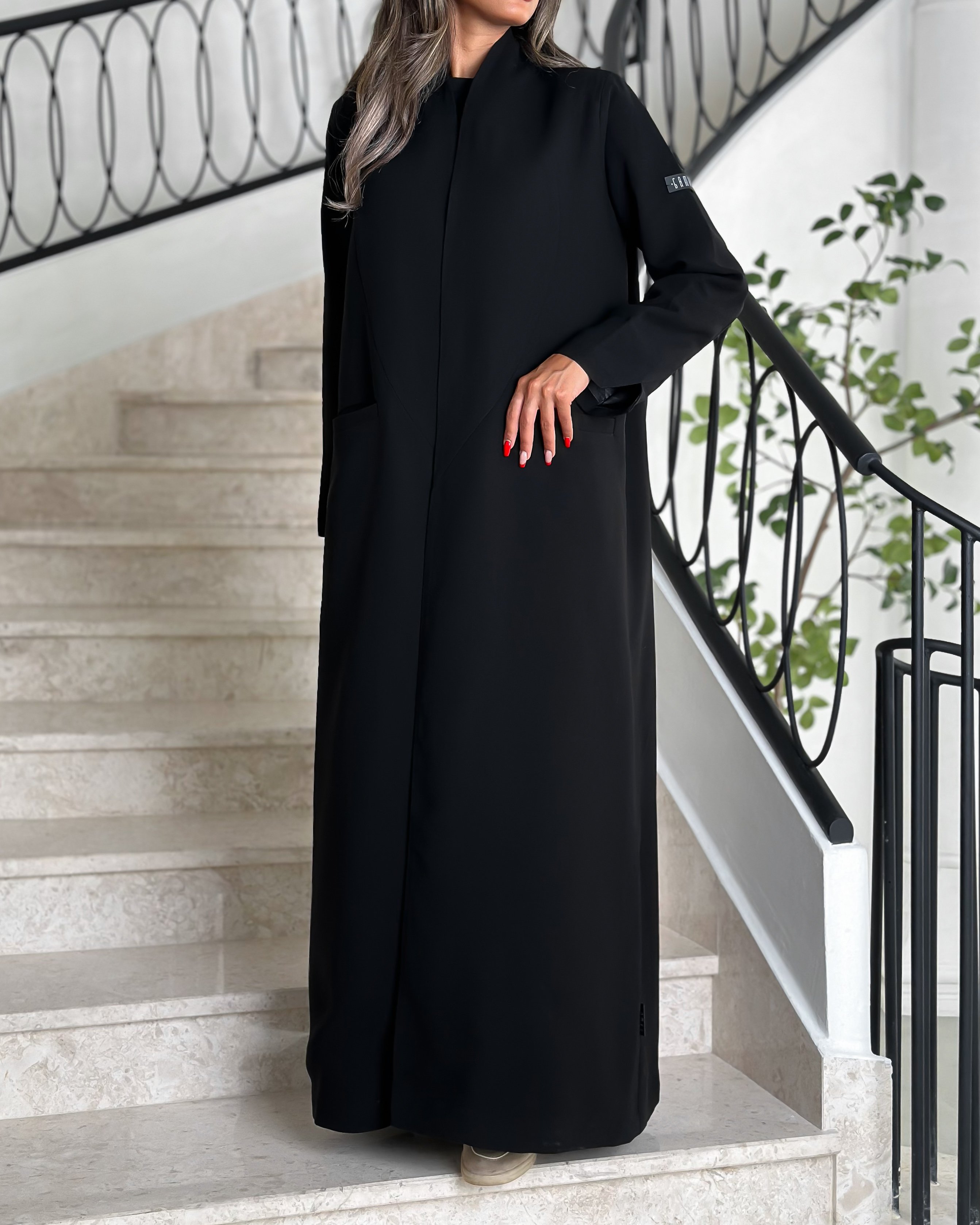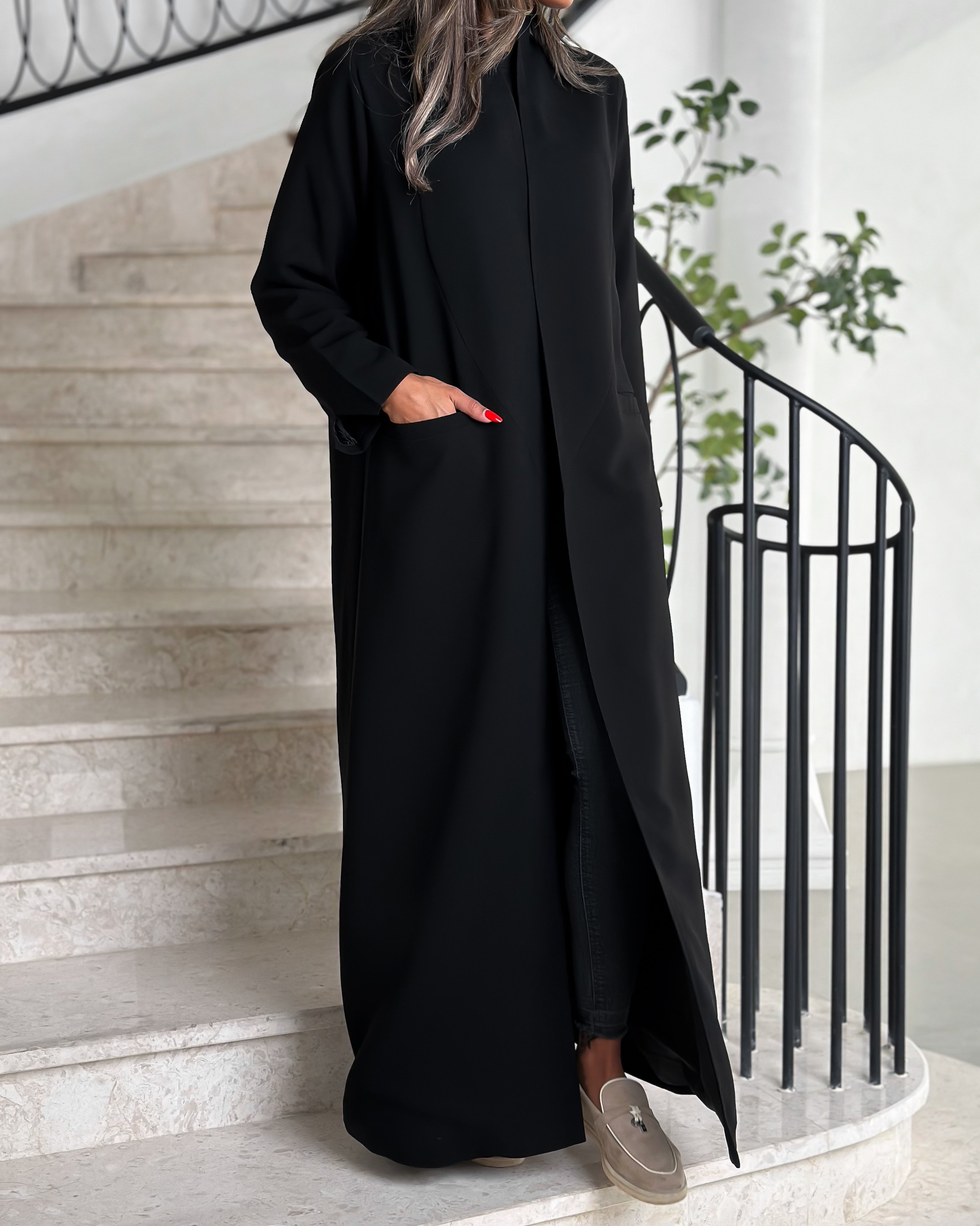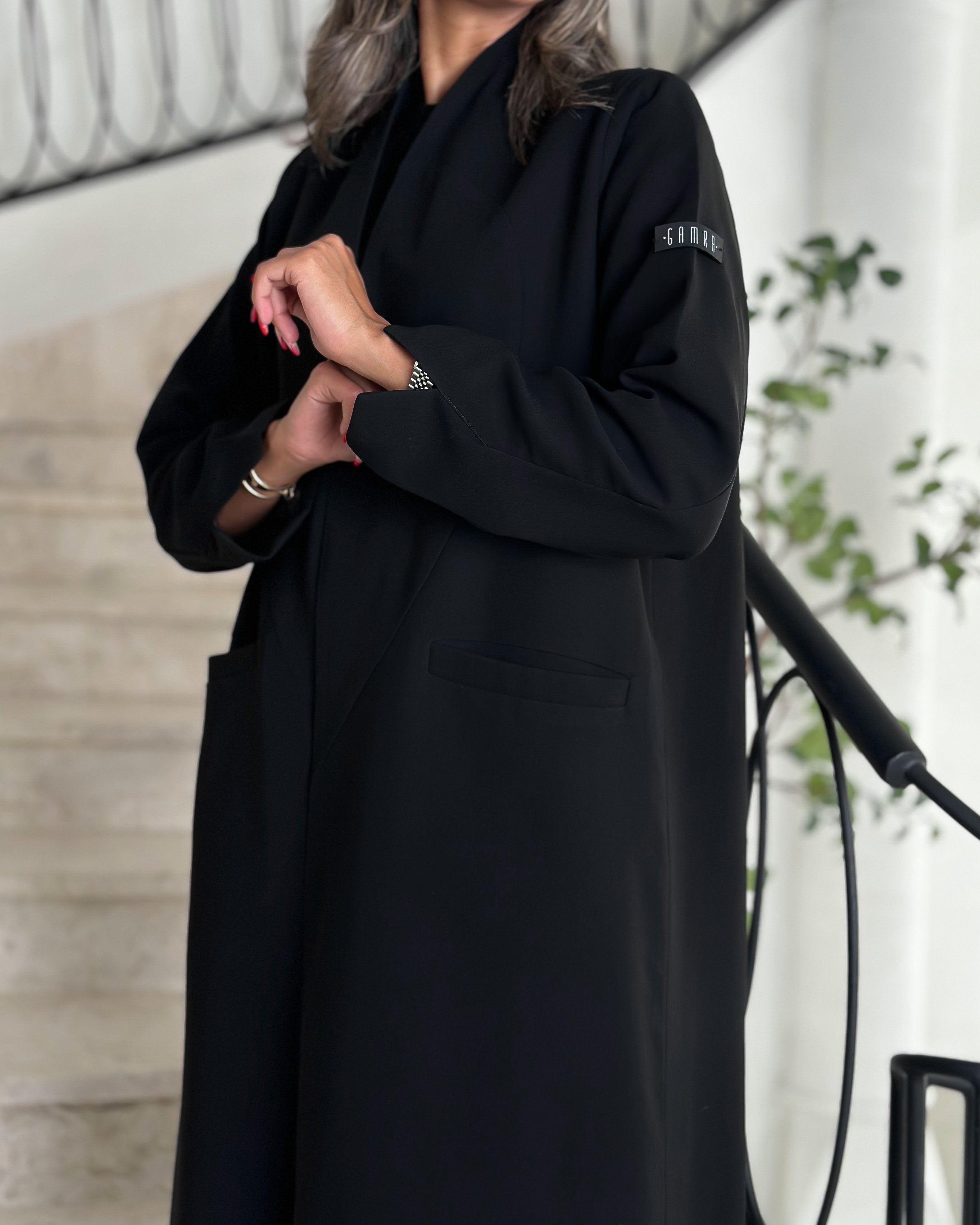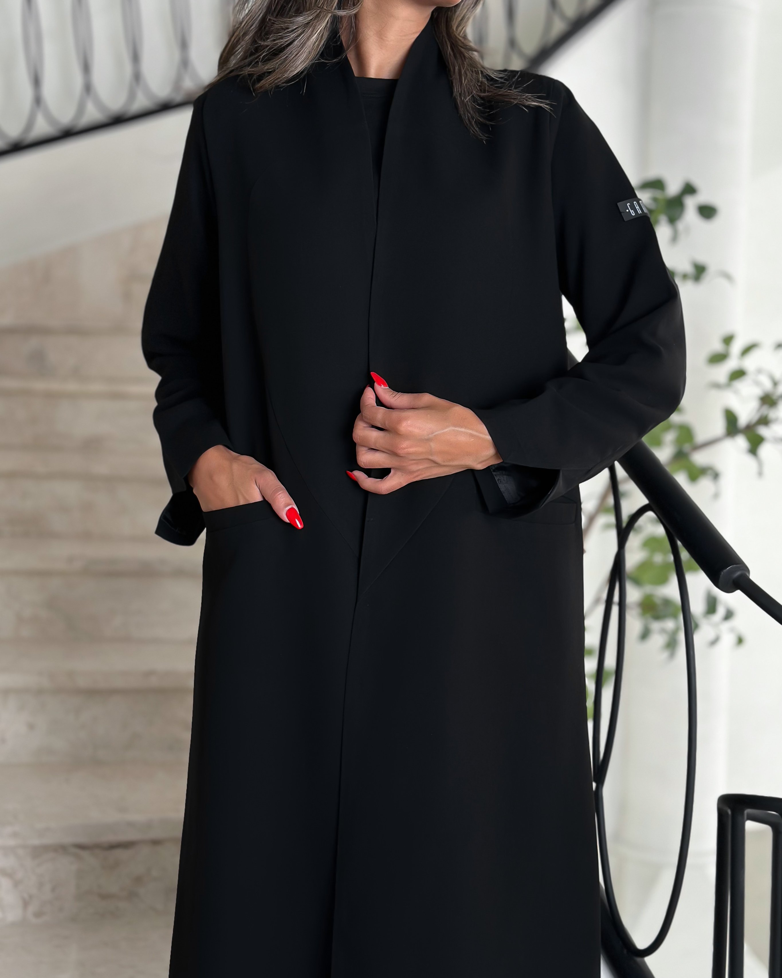 Details: Blazer abaya Cuba fabric , padded and with added shoulder pads, plain shawl