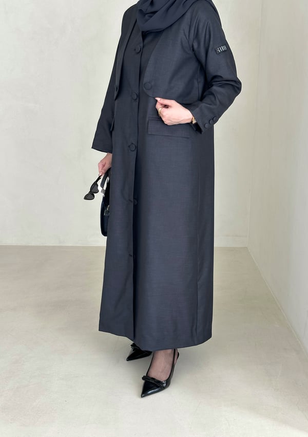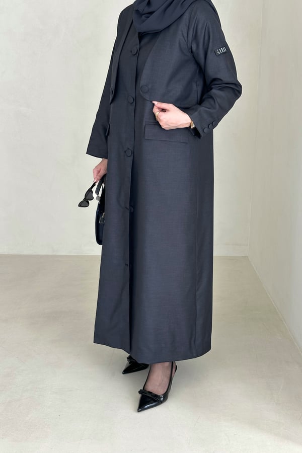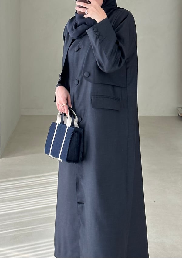 التفاصيـل : عباية بليزر خام كشمير صيفي ، مبطنه و مزوده بكتافيات ، ملفع ساده. غسيل العباية : الرجاء مراعاة العبايه فالغسيل وننصح بالغسيل الجاف فالمغاسل المختصه