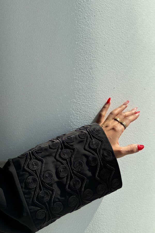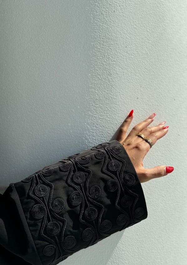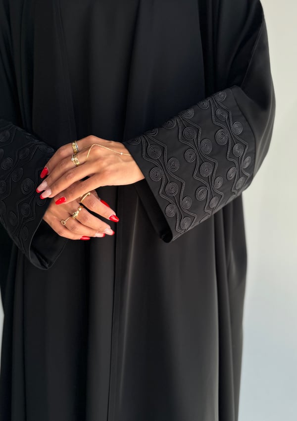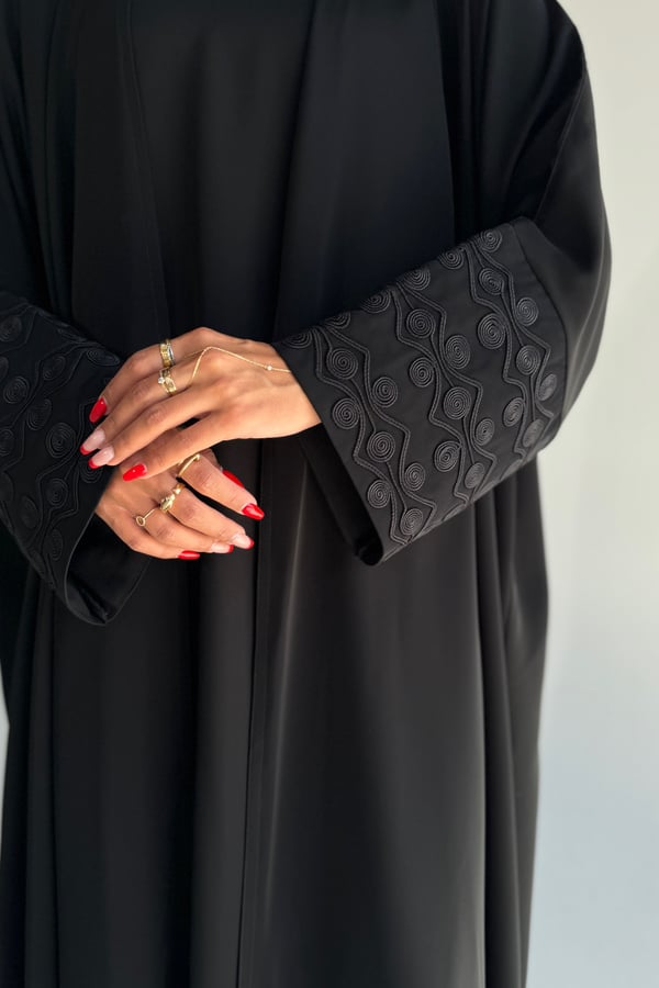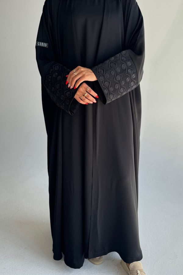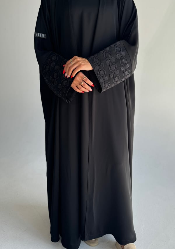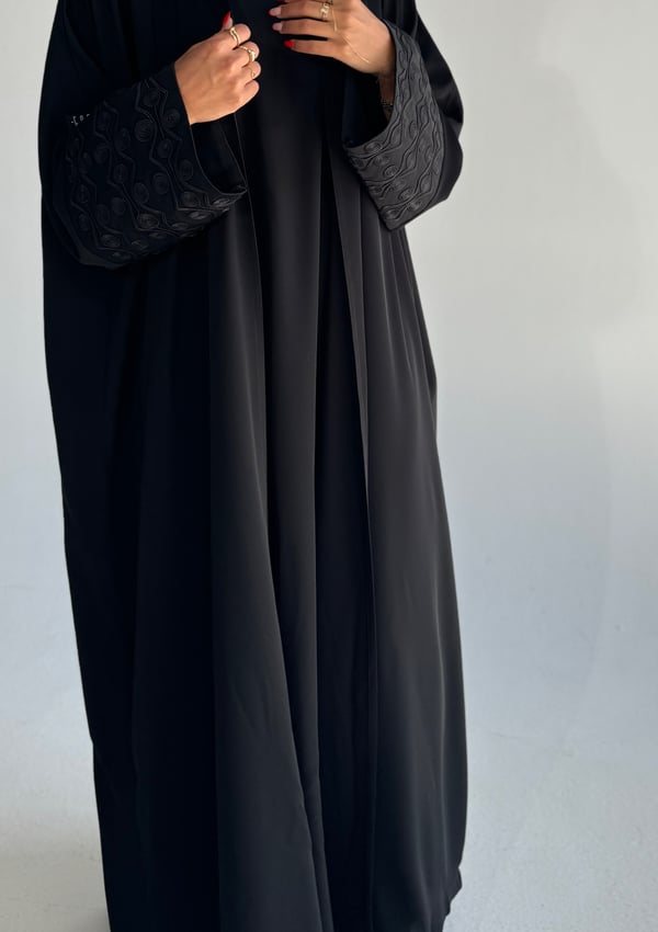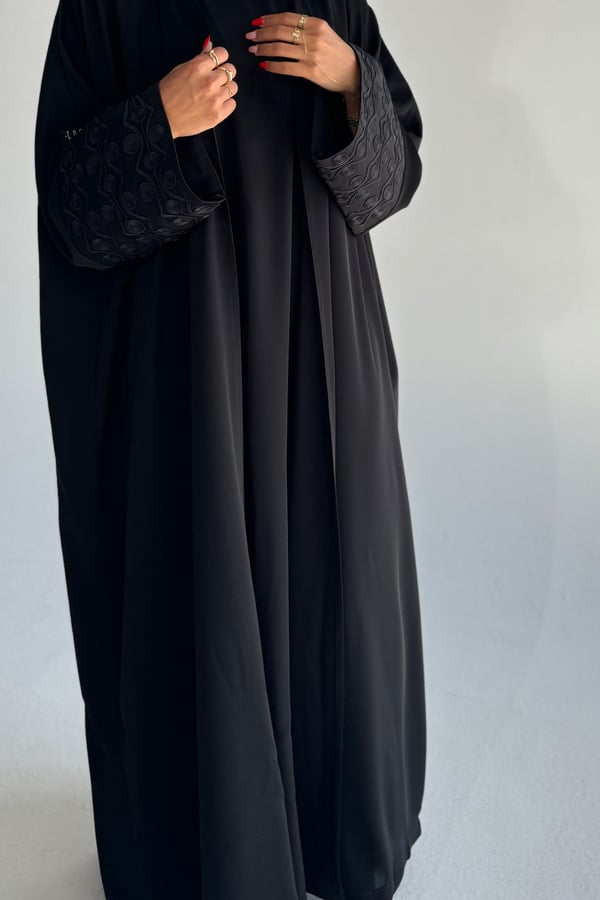 التفاصيـل : عباية كريب ناعم تطريز كم ، قصة نص بشت ،ملفع اسود