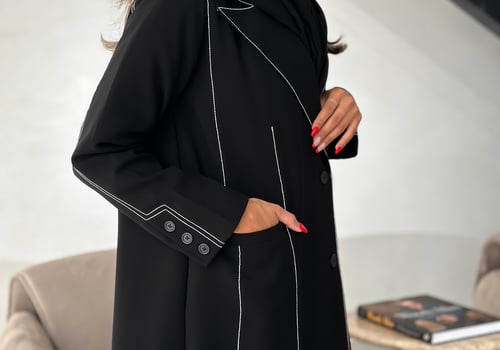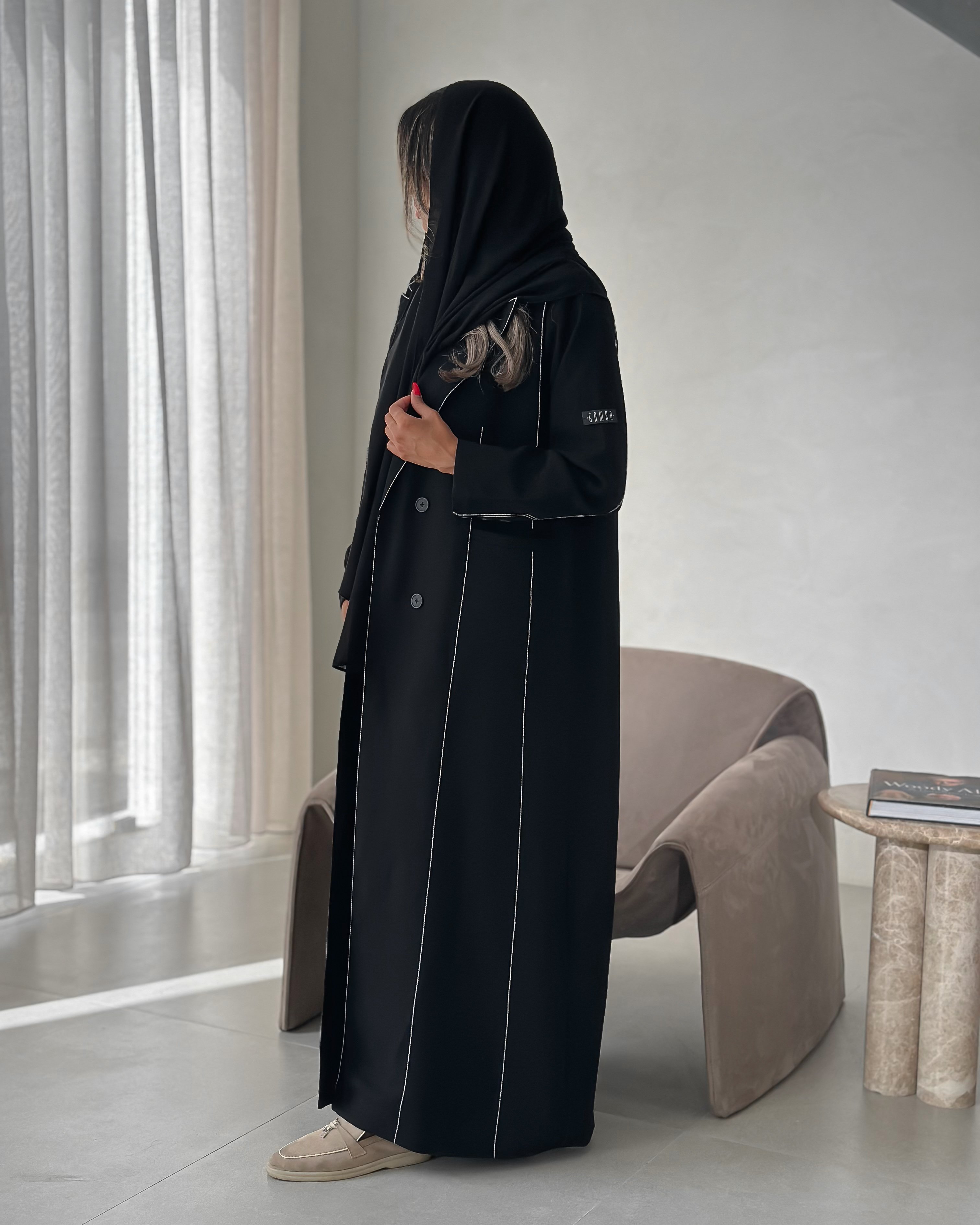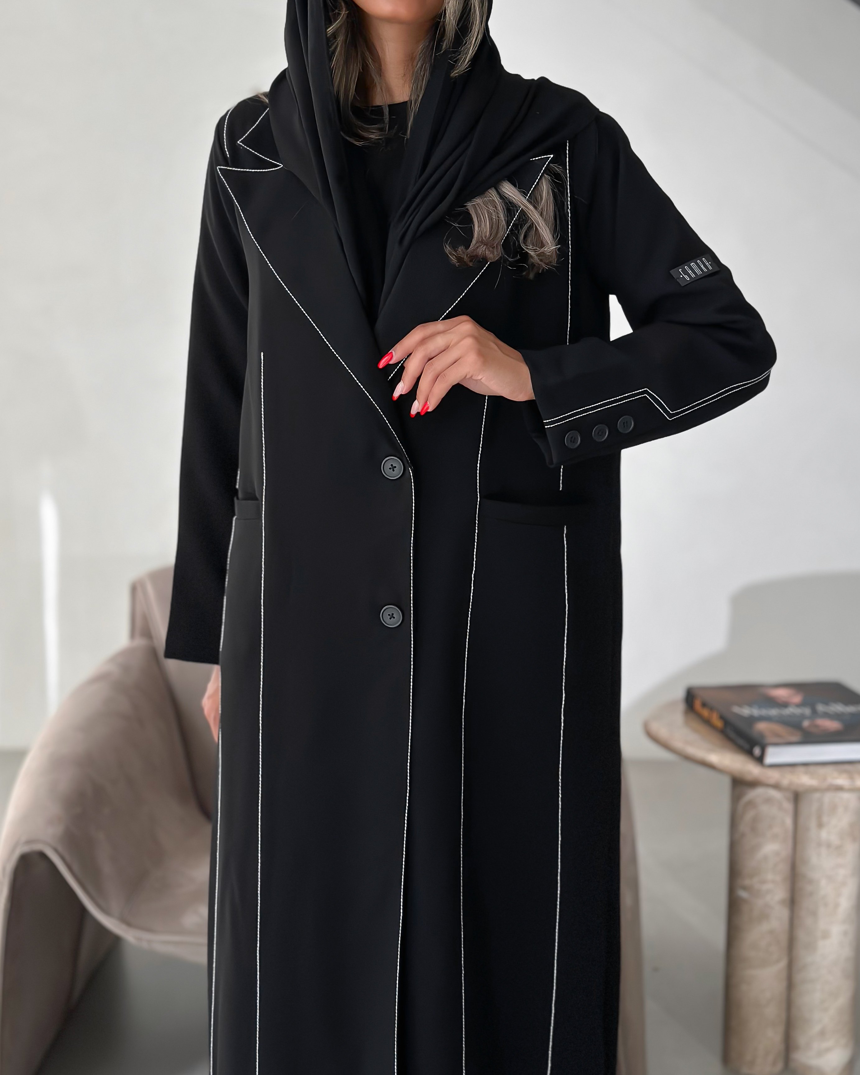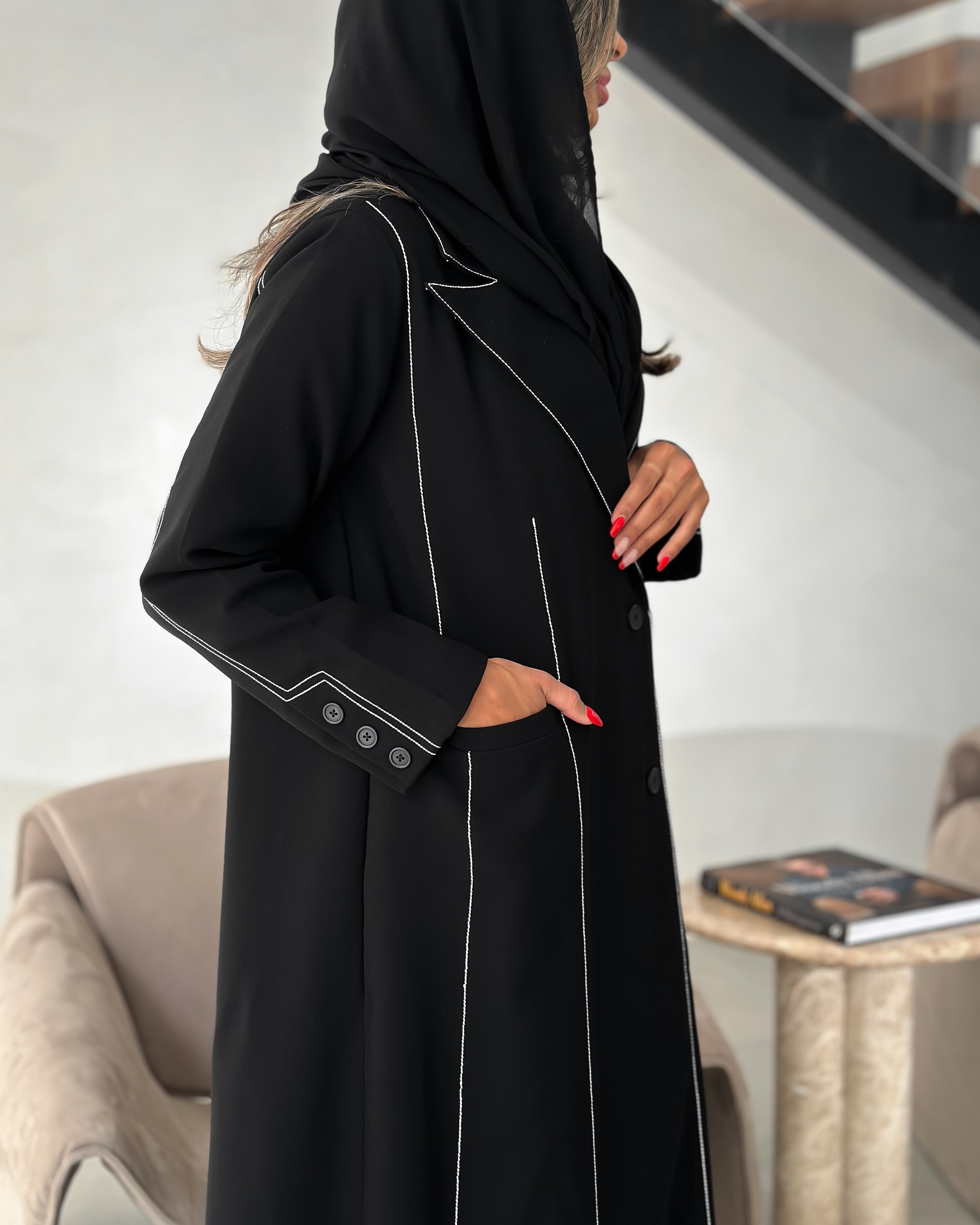 Details: Blazer abaya Cuba fabric , lines for embroidery padded and with added shoulder pads, plain shawl Washing the abaya: Please be mindful when washing the abaya and we recommend dry cleaning at specialized laundries