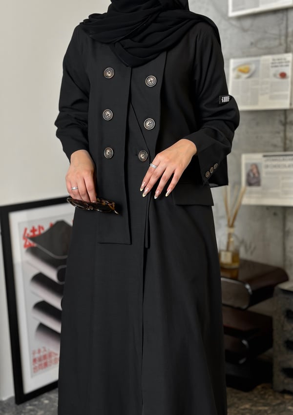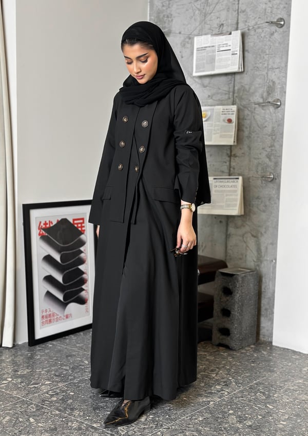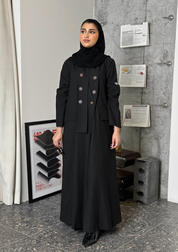 عباية بستايل بليزر مع قصة مميزة عند الغولة. تتوفر بخامتين: لنن و كوبا القطعه المعروضه: لنن