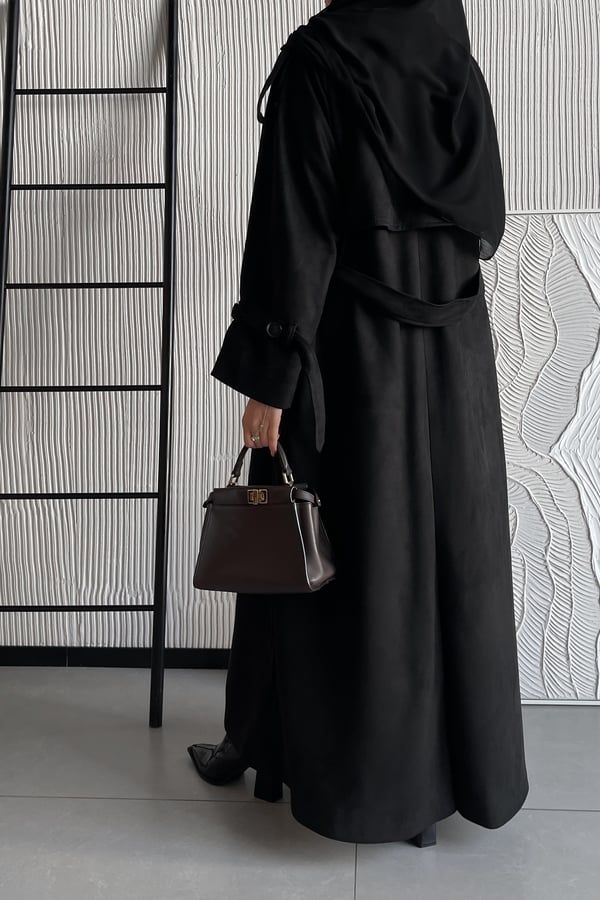 عبايه مخمل بقصة كتف و مزوده بتطري...