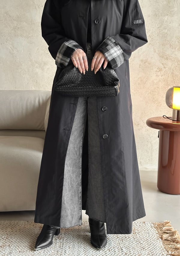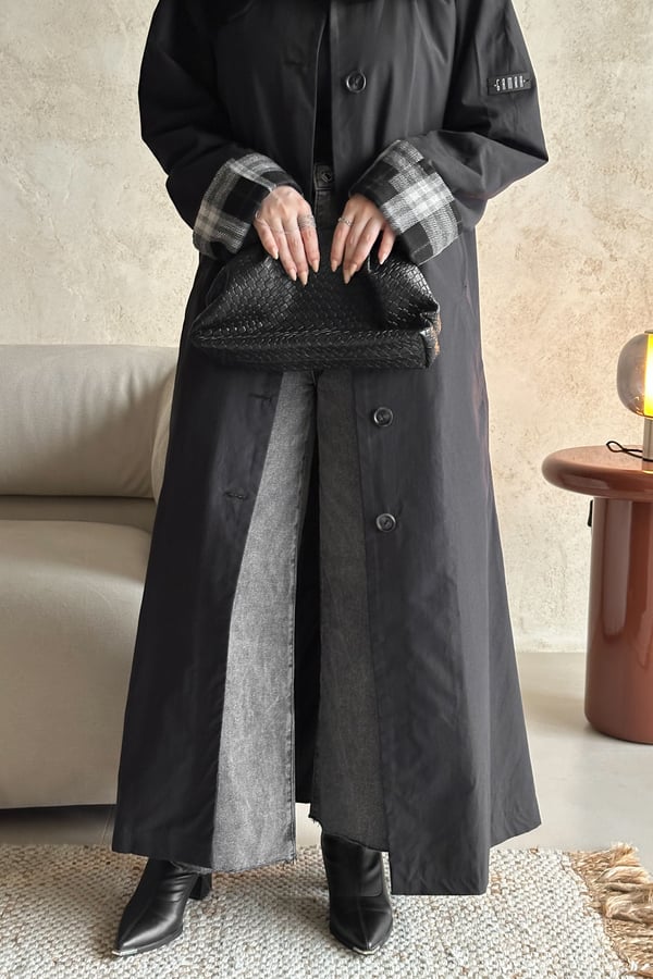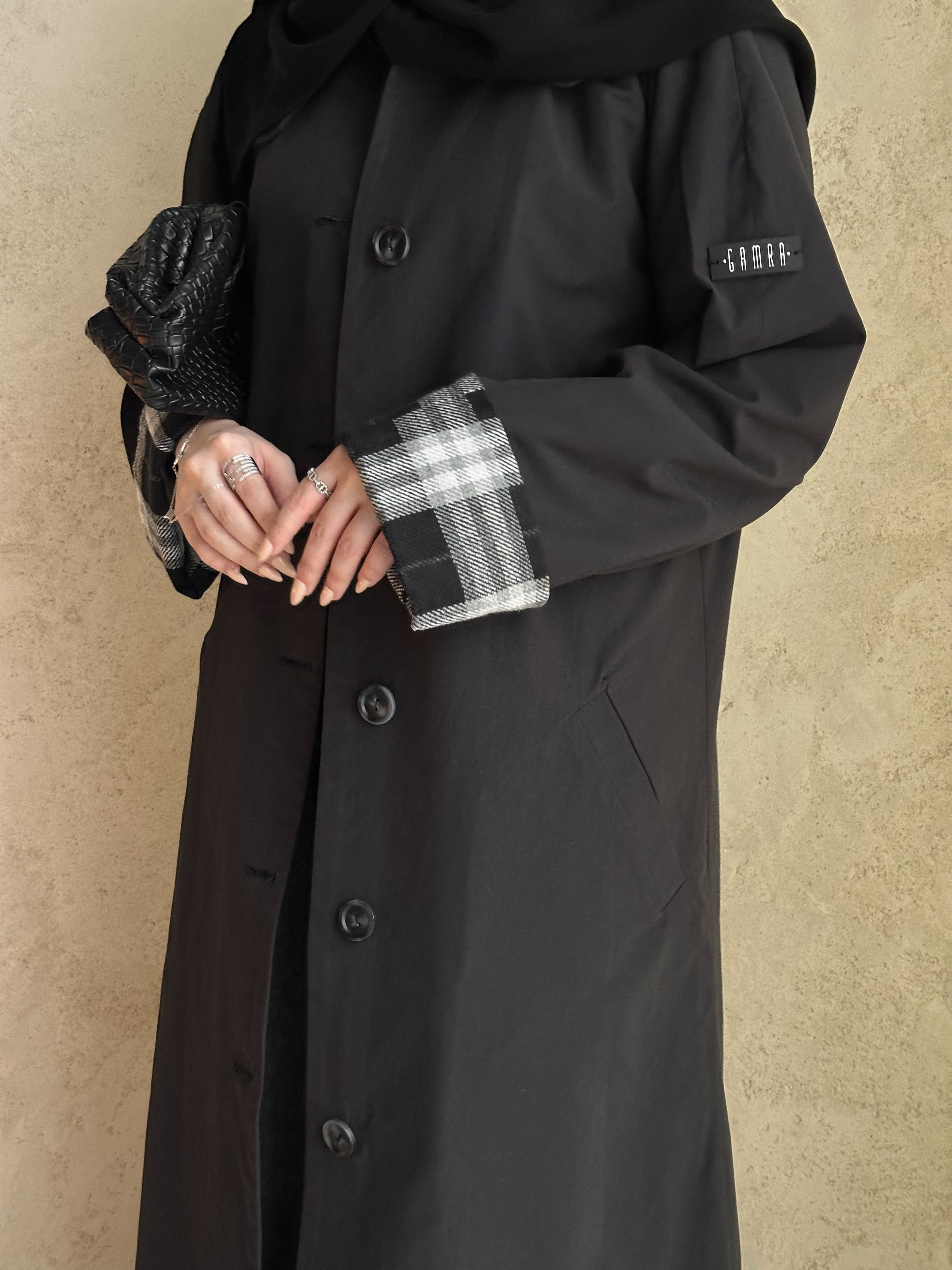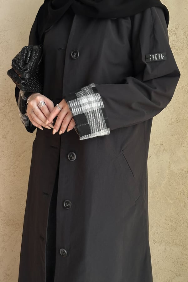 عبايه بخام ترنش كوت (ربيعي) مبطنه و مزوده بأكمام كروهات