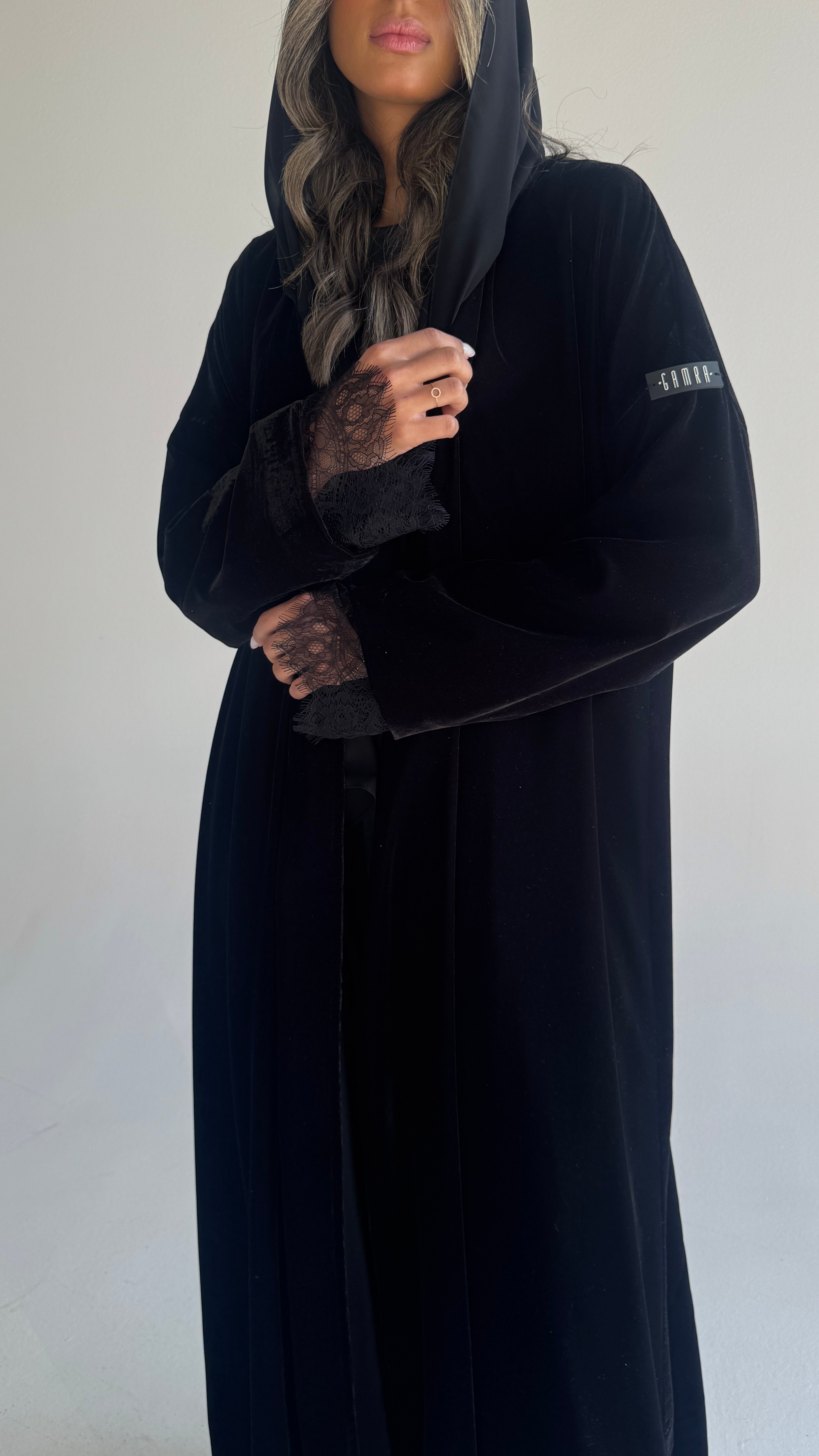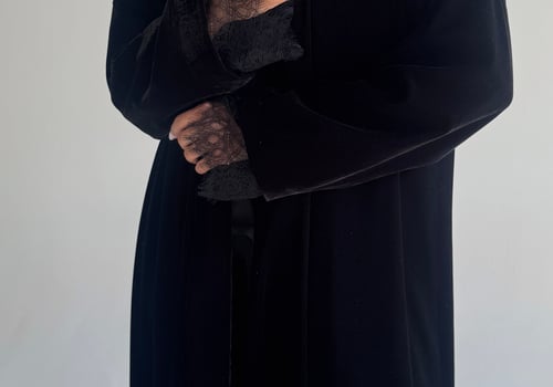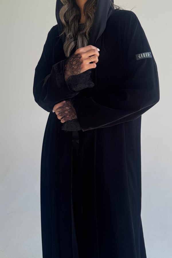 عبايه بشت مخمل مع دانتيل