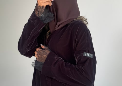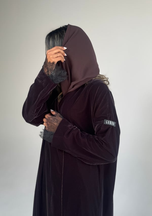عبايه مخمل بقصة كتف مع بتطريز شمو...