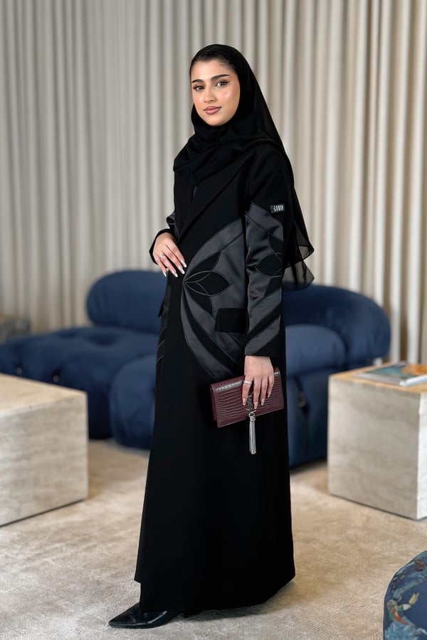 عباية مميزة بتطريز بتقنية الـ Appliqué Embroidery، ومبطنة الخام: كوبا