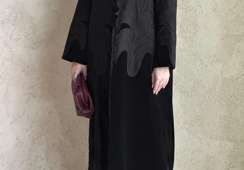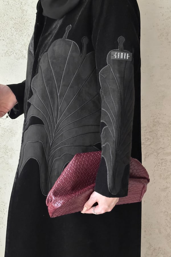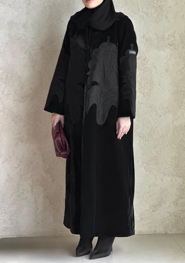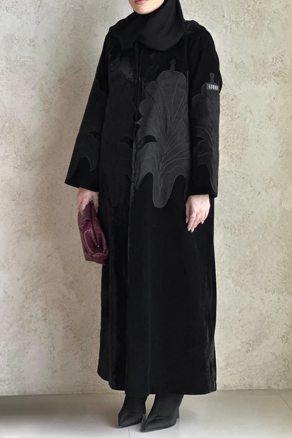 عبايه مخمل بقصة كتف مع بتطريز شمواه مبطنه مزوده بكتافيات