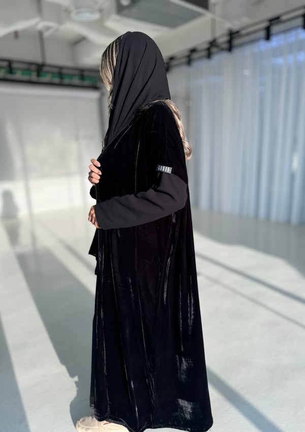 عبايه مخمل بقصة كتف مع بتطريز شمو...