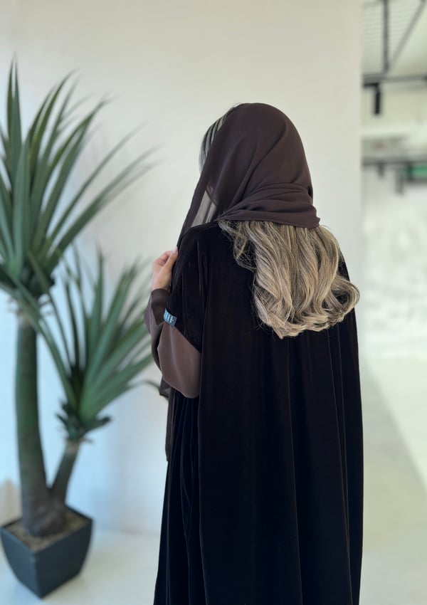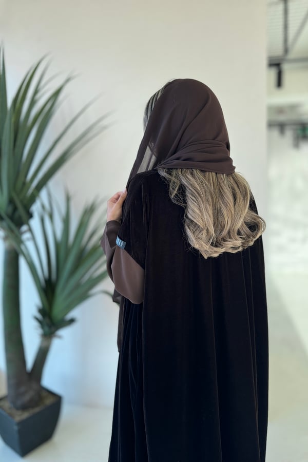 عبايه مخمل بقصة كتف مع بتطريز شمو...
