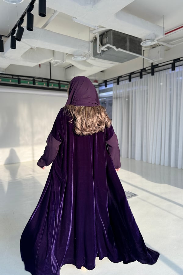 عبايه مخمل بقصة كتف و مزوده بدانت...