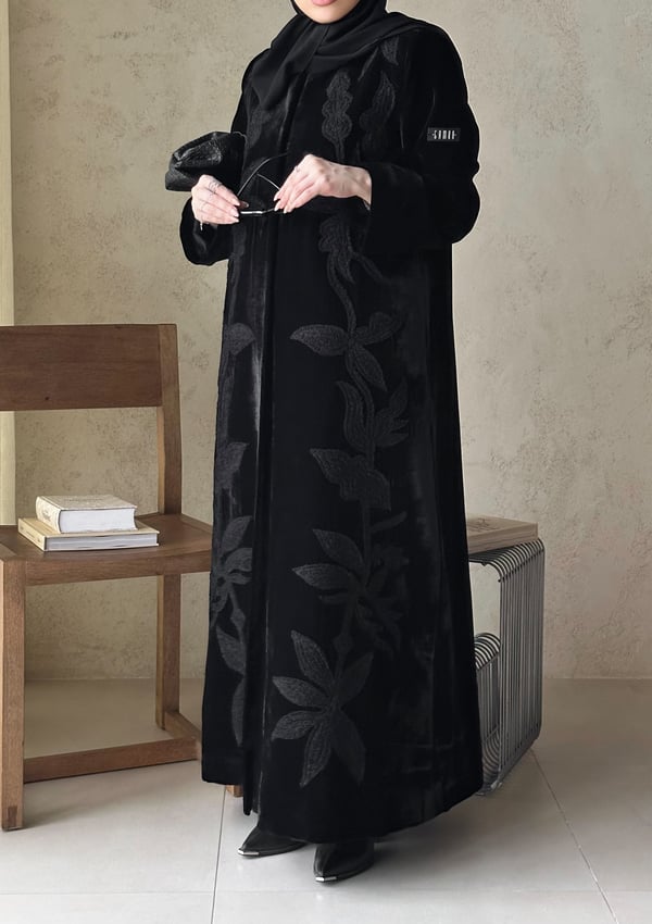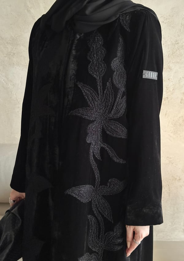 عبايه مخمل بقصة كتف مع بتطريز شمو...