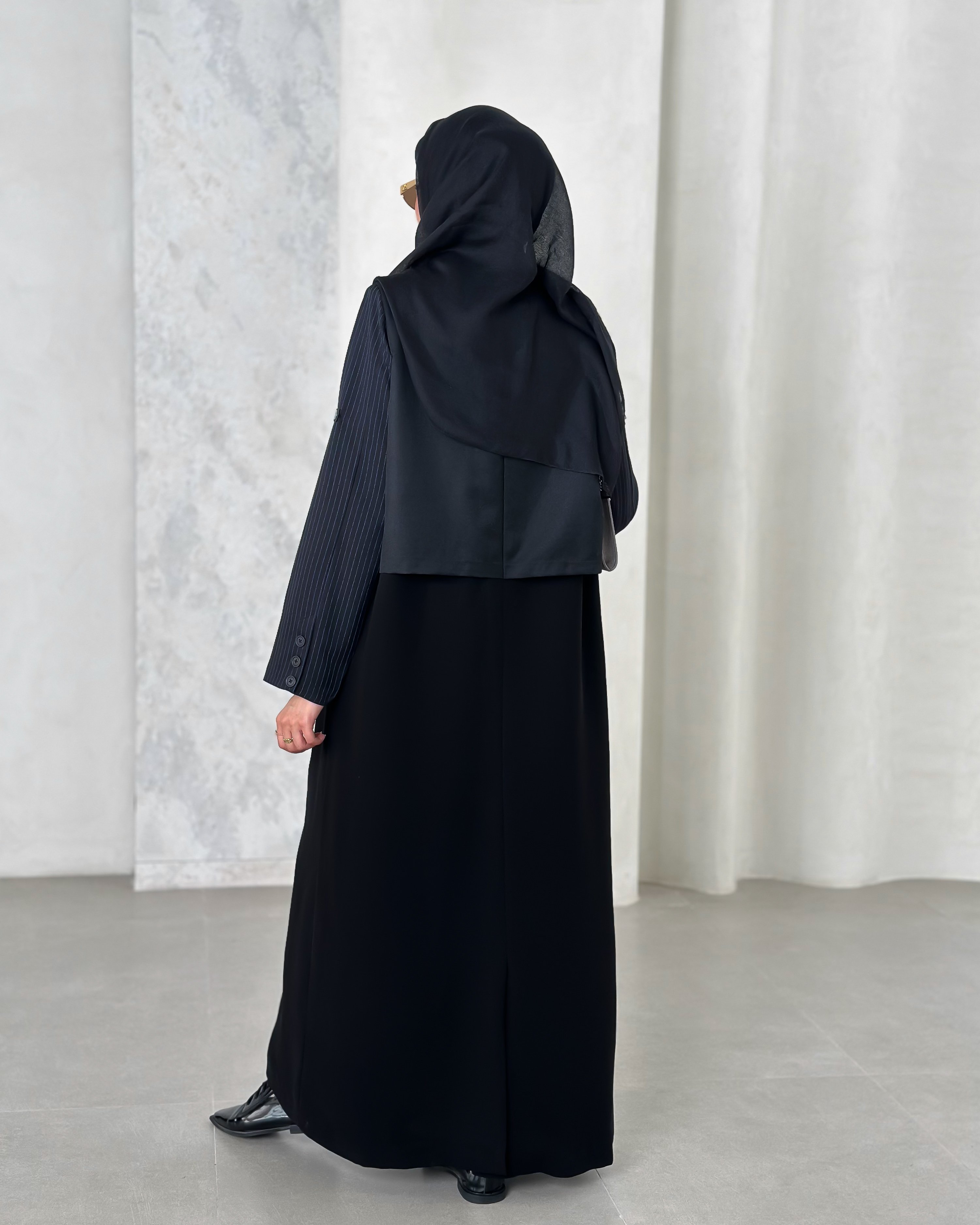 Details: Blazer abaya Cuba , cotton jeans, cashmere fabric , padded and with added shoulder pads, plain shawl Washing the abaya: Please be mindful when washing the abaya and we recommend dry cleaning at specialized laundries