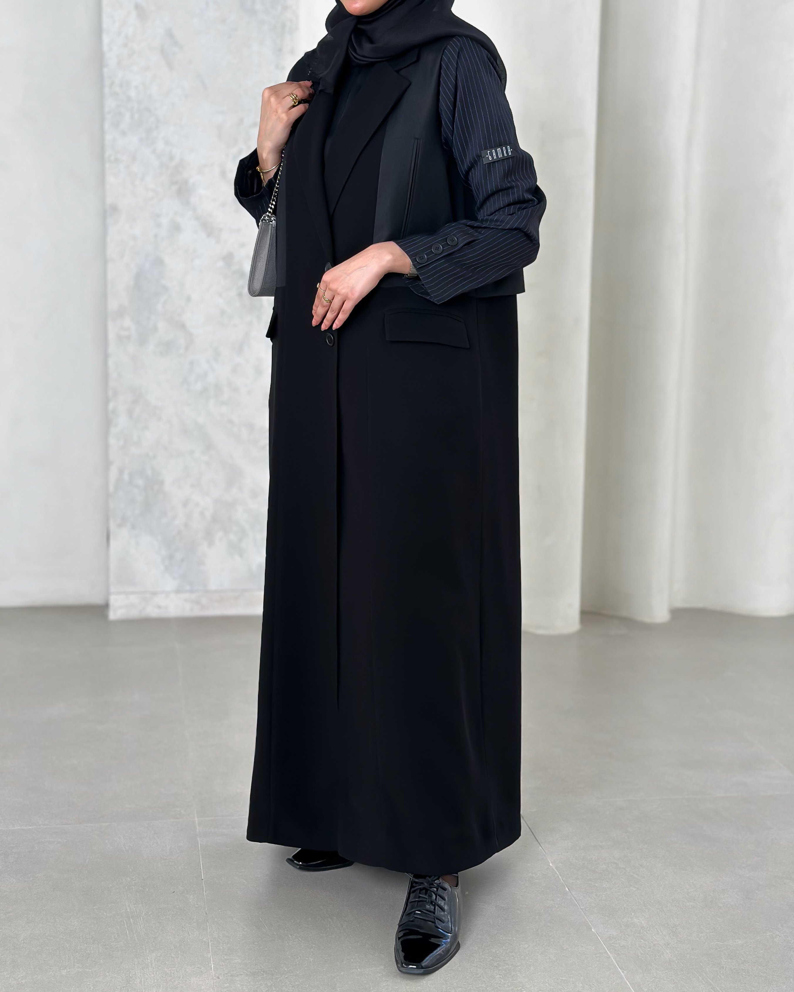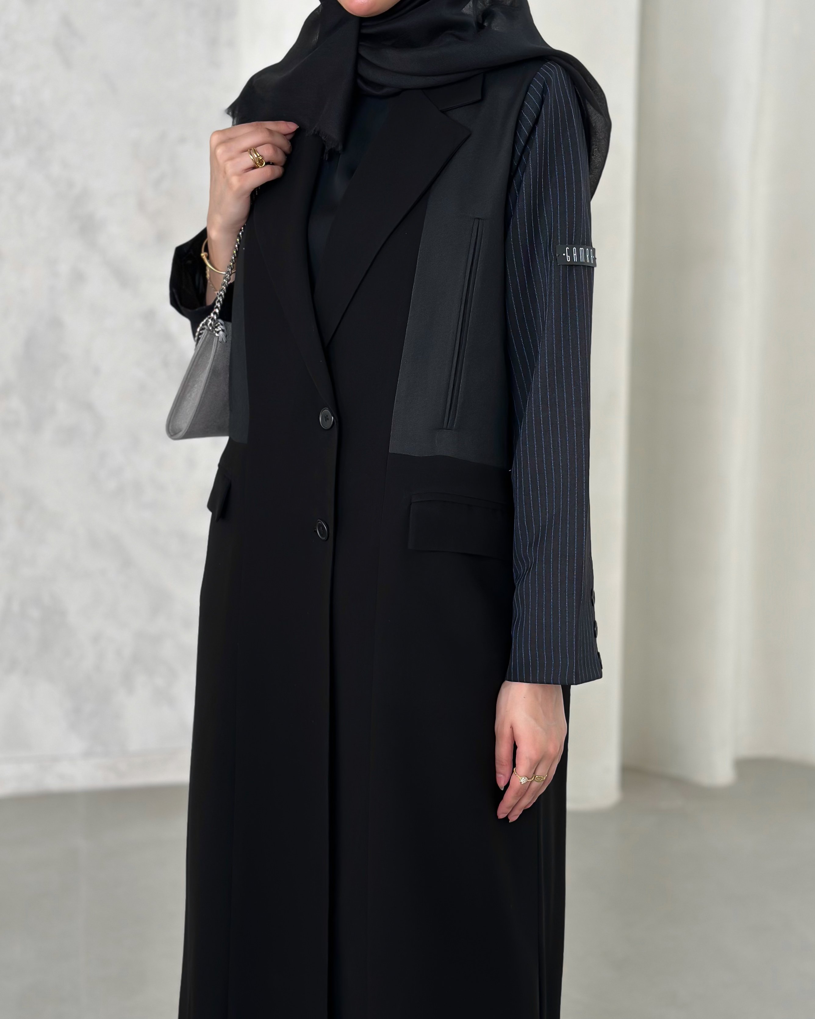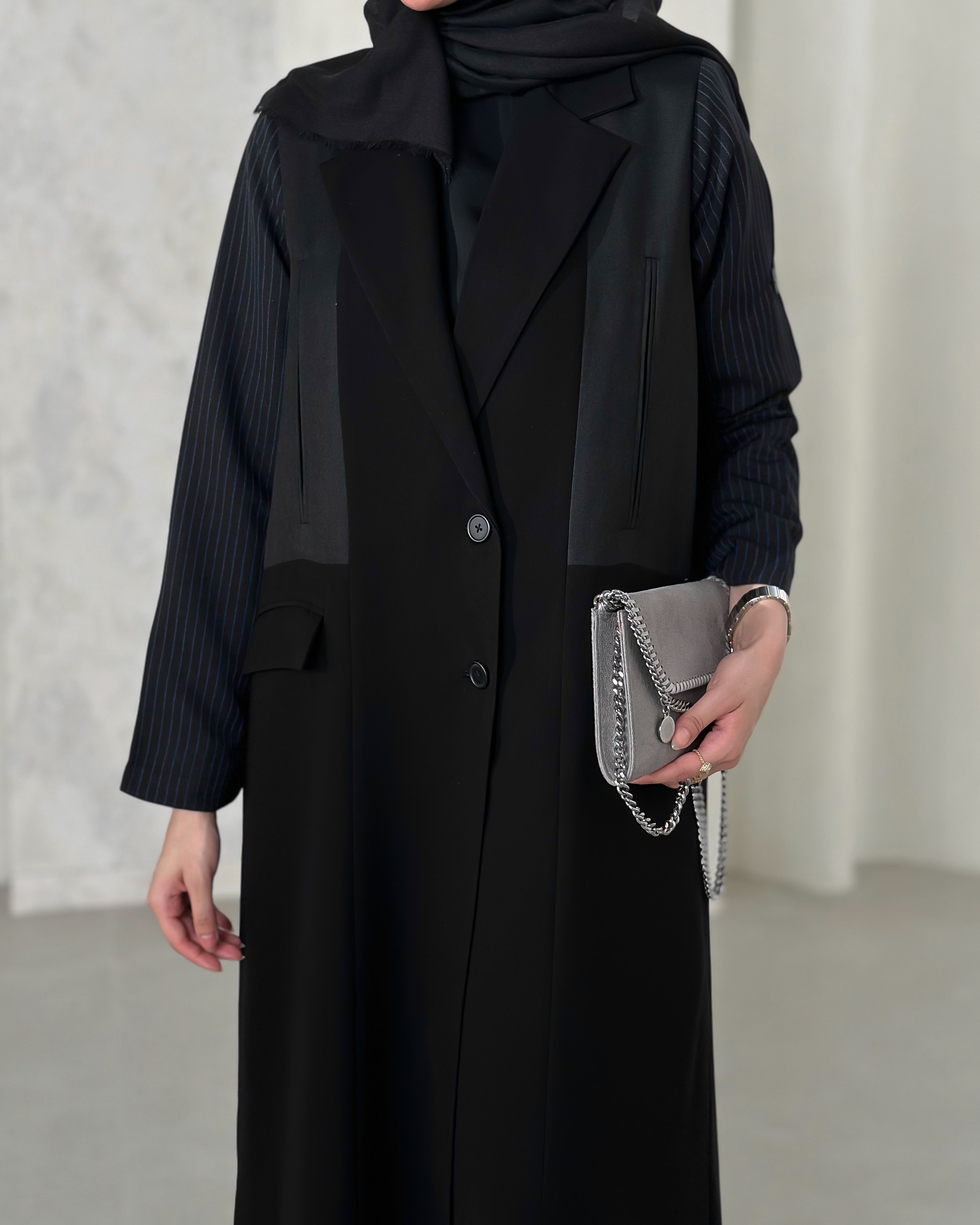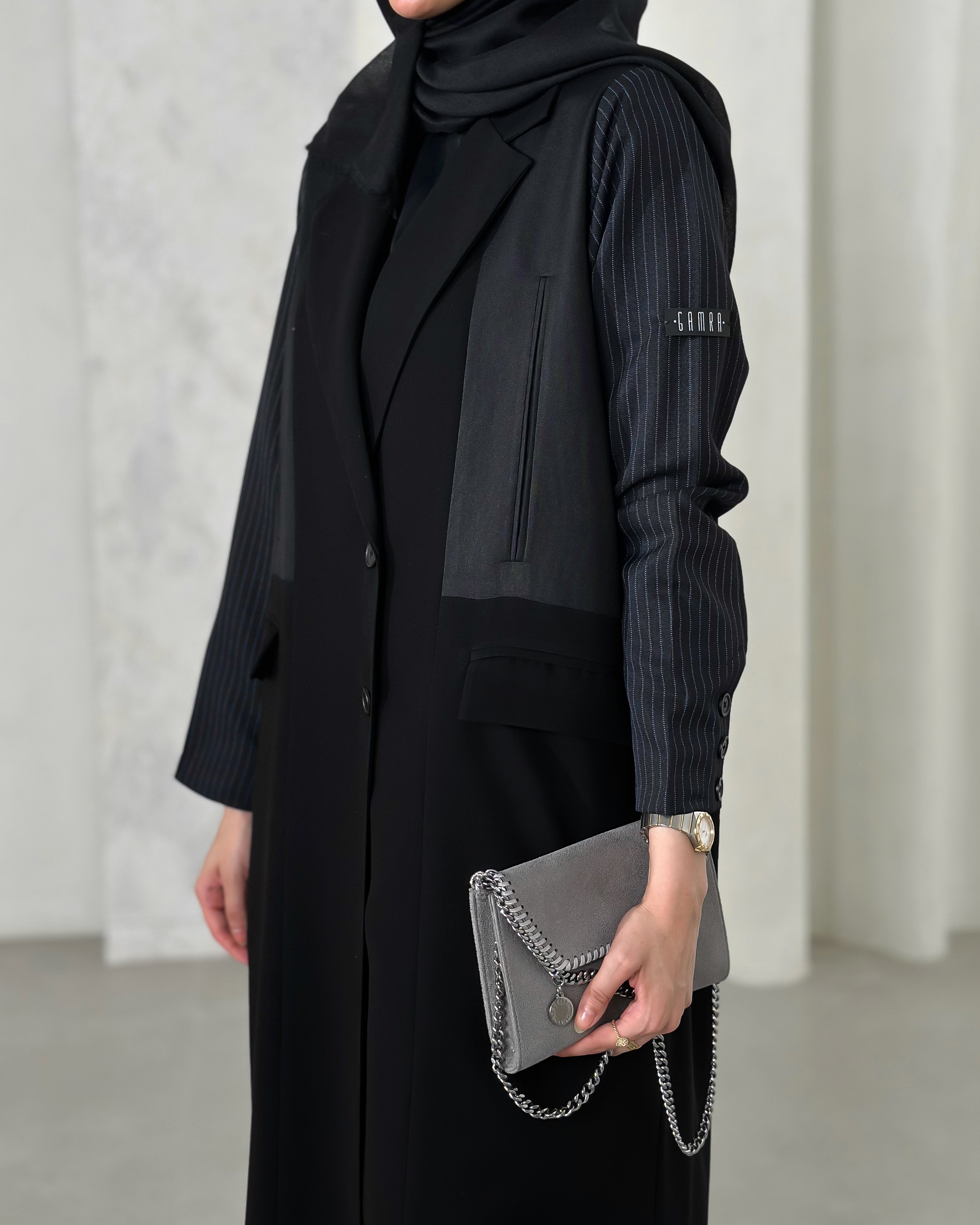 Details: Blazer abaya Cuba , cotton jeans, cashmere fabric , padded and with added shoulder pads, plain shawl